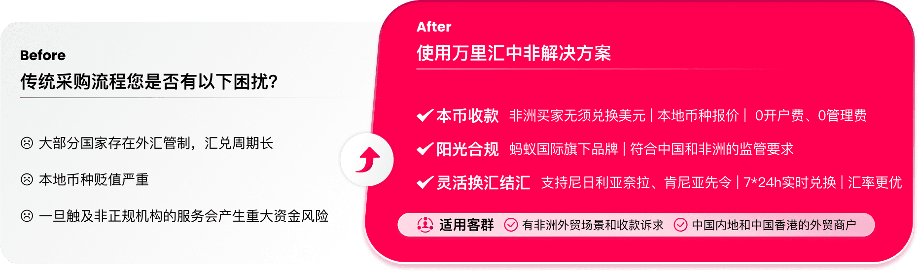 支持非洲13个国家和9个本地币种收款,美金快速入账
