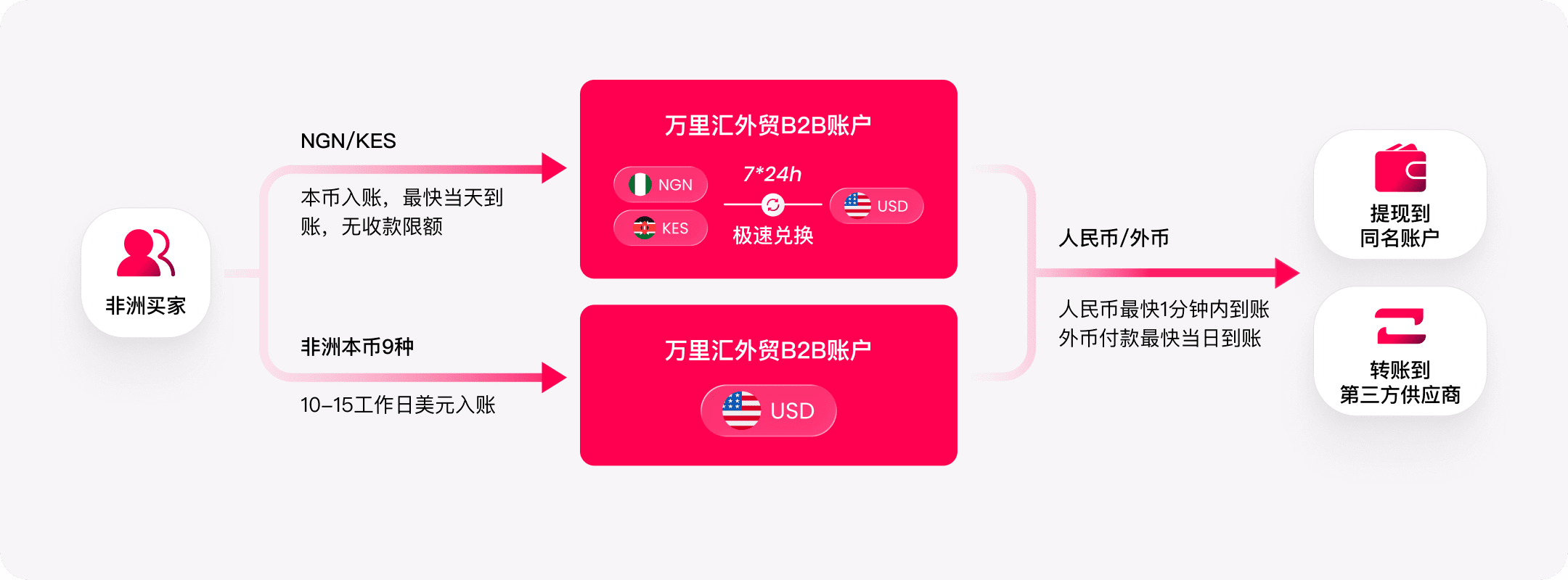 支持尼日利亚、肯尼亚本地收款账户,本币快速入账